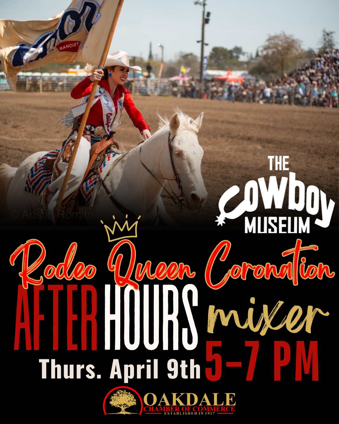 The Oakdale Chamber of Commerce invites you to a special After Hours Mixer as we celebrate the Rodeo Queen Coronation at the Oakdale Cowboy Museum!